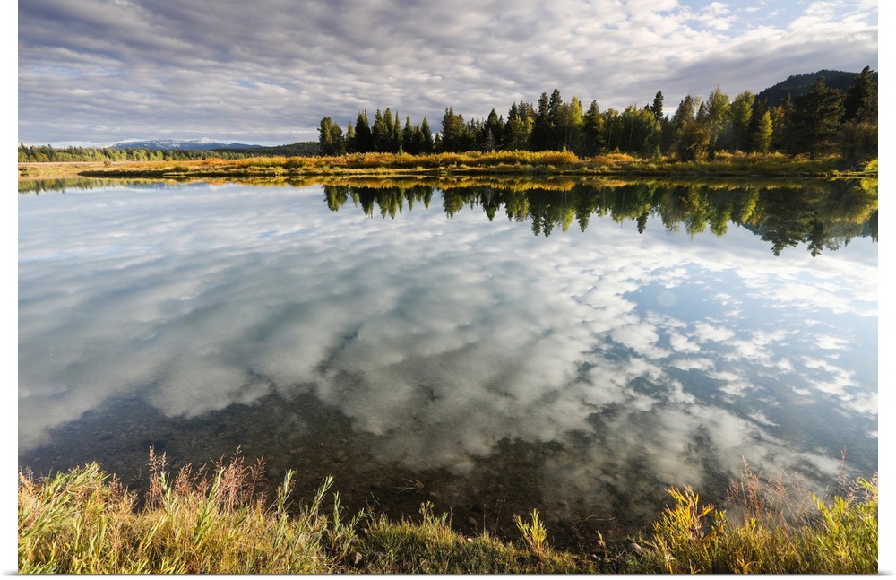 <p>Reflection of clouds on water, Teton Range, Grand Teton National Park, Wyoming, USA</p>