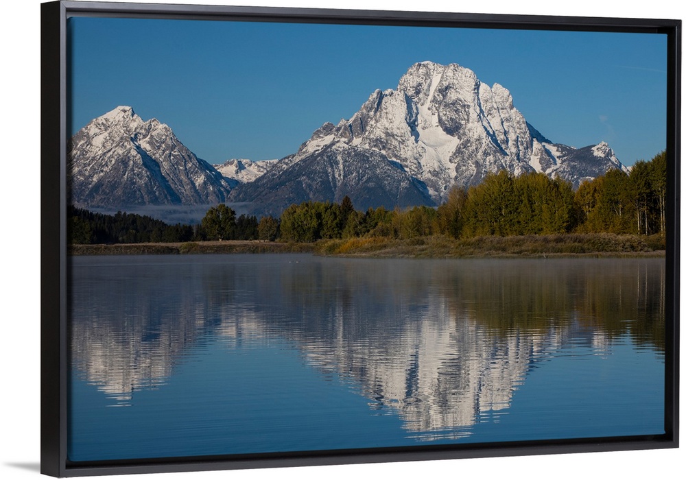 <p>Reflection of mountain and trees on water, Teton Range, Grand Teton National Park, Wyoming, USA</p>