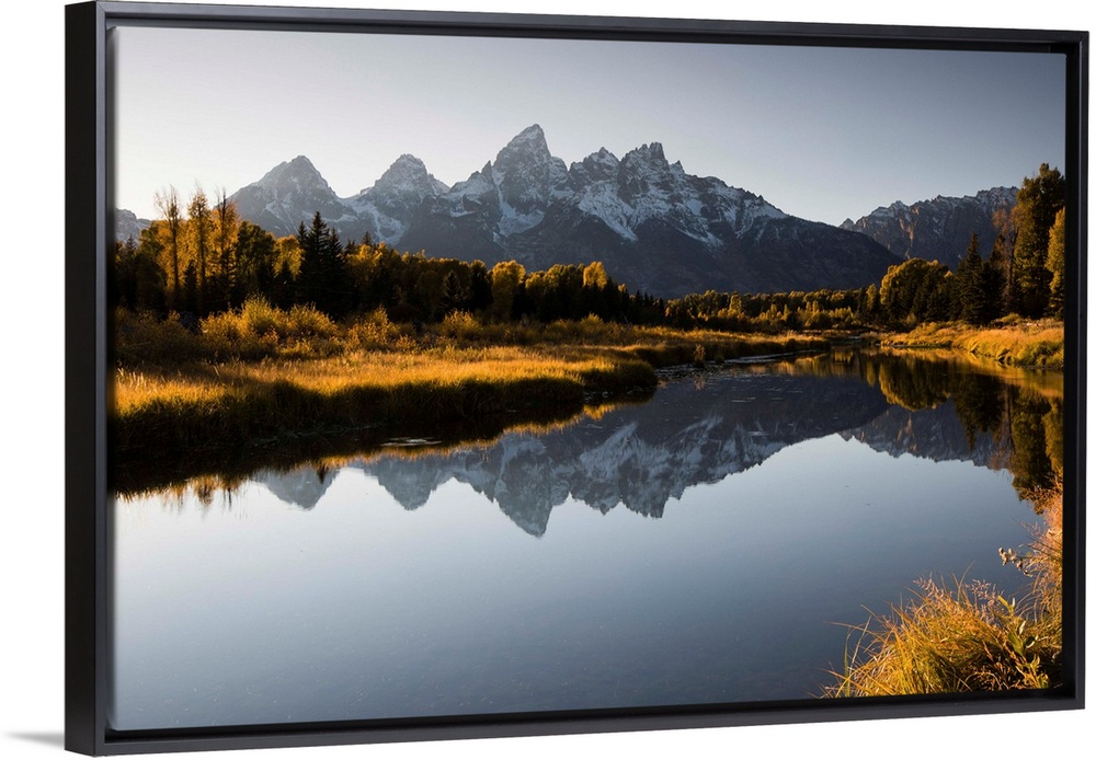 <p>Reflection of mountain on water, Teton Range, Grand Teton National Park, Wyoming, USA</p>