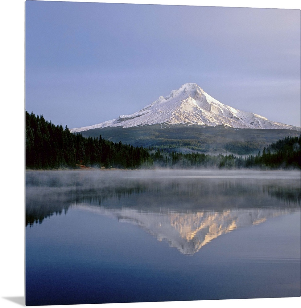 <p>Reflection of mountain range in a lake, Mt Hood, Trillium Lake, Mt Hood National Forest, Oregon, USA</p>