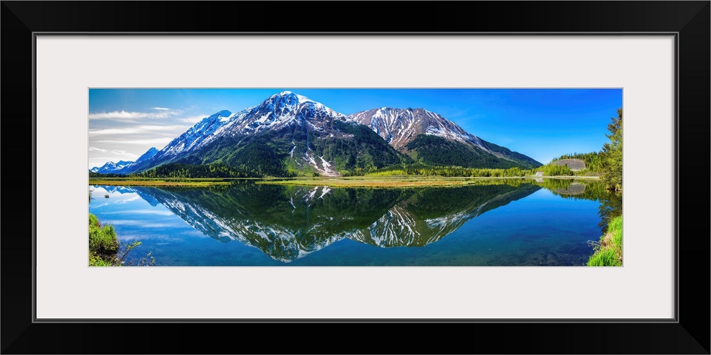 <p>Reflection of mountains in tern lake, tern lake wildlife viewing area, near moose lake, kenai peninsula, aLaska, USA.</p>