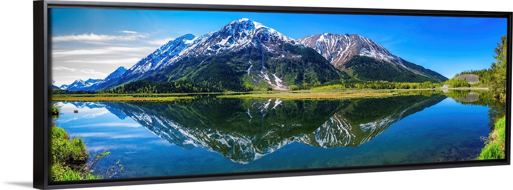 <p>Reflection of mountains in tern lake, tern lake wildlife viewing area, near moose lake, kenai peninsula, aLaska, USA.</p>