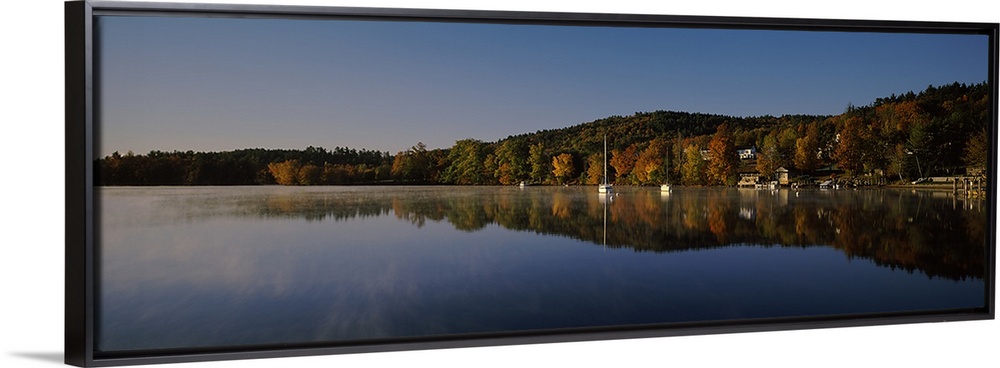 <p>Reflection of trees in a lake, Lake Winnipesaukee, Center Harbor, Belknap County, New Hampshire, USA</p>