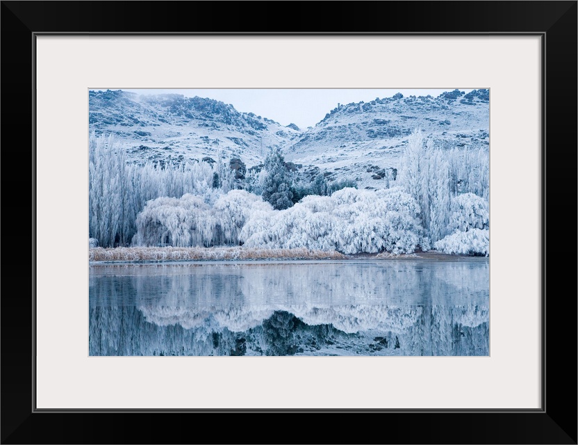 <p>Reflections and Hoar Frost, Butchers Dam, near Alexandra, Central Otago, South Island, New Zealand</p>