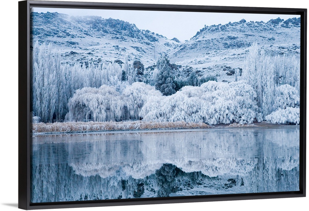<p>Reflections and Hoar Frost, Butchers Dam, near Alexandra, Central Otago, South Island, New Zealand</p>