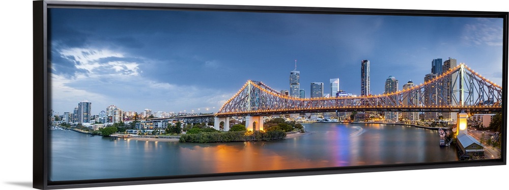 <p>Colourful reflections in the Brisbane River as storm clouds gather over the Story bridge and the Brisbane River in Brisbane. Brisbane, South East Queensland, Queensland, Australia</p>