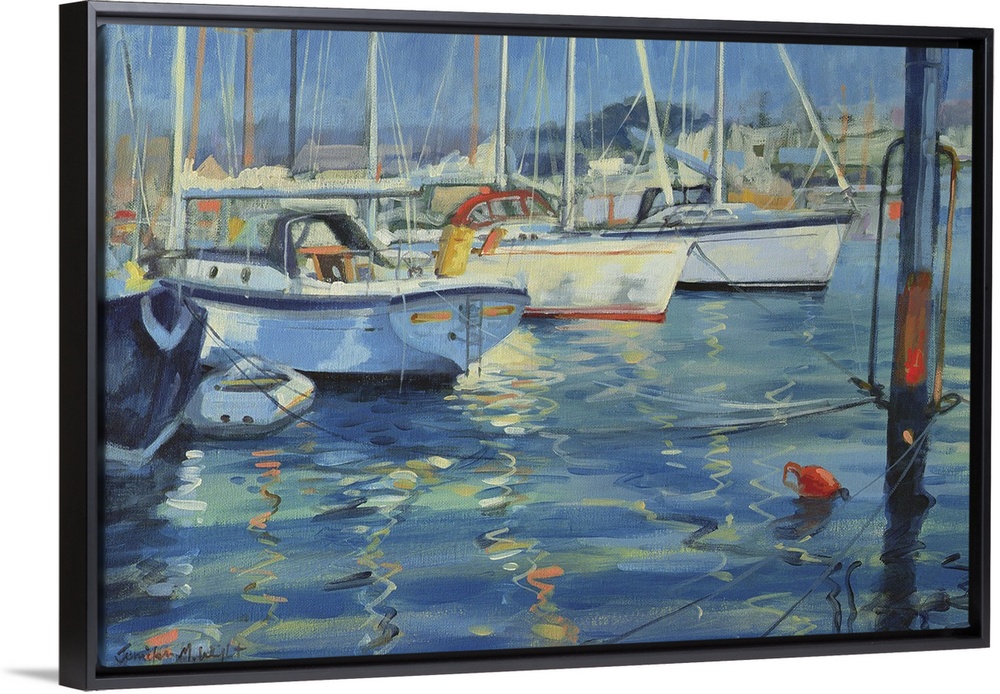 Art Blue Wall Art Contemporary Art Rivers, Lakes, and Oceans Harbor Painting Transportation Boat Sailboat Jennifer Wright