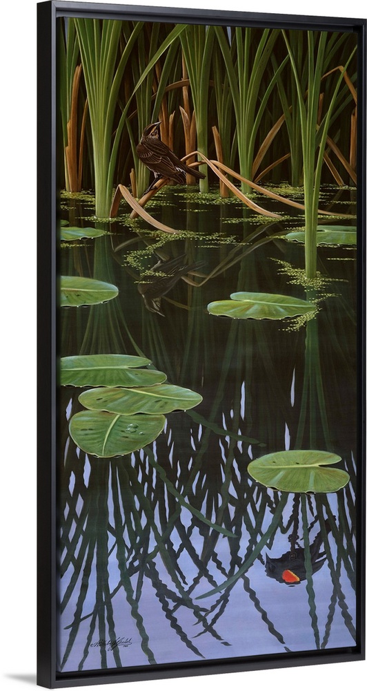 <p>Reflection of a Redwing blackbird in a pond.</p>