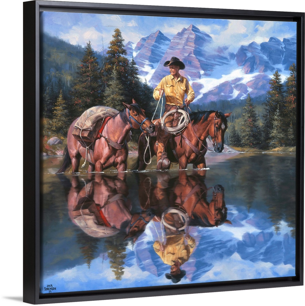 Art Contemporary Art Landscapes Mountains River, Creek and Stream Painting People Cowboys Jack Sorenson Western Wildlife Horse