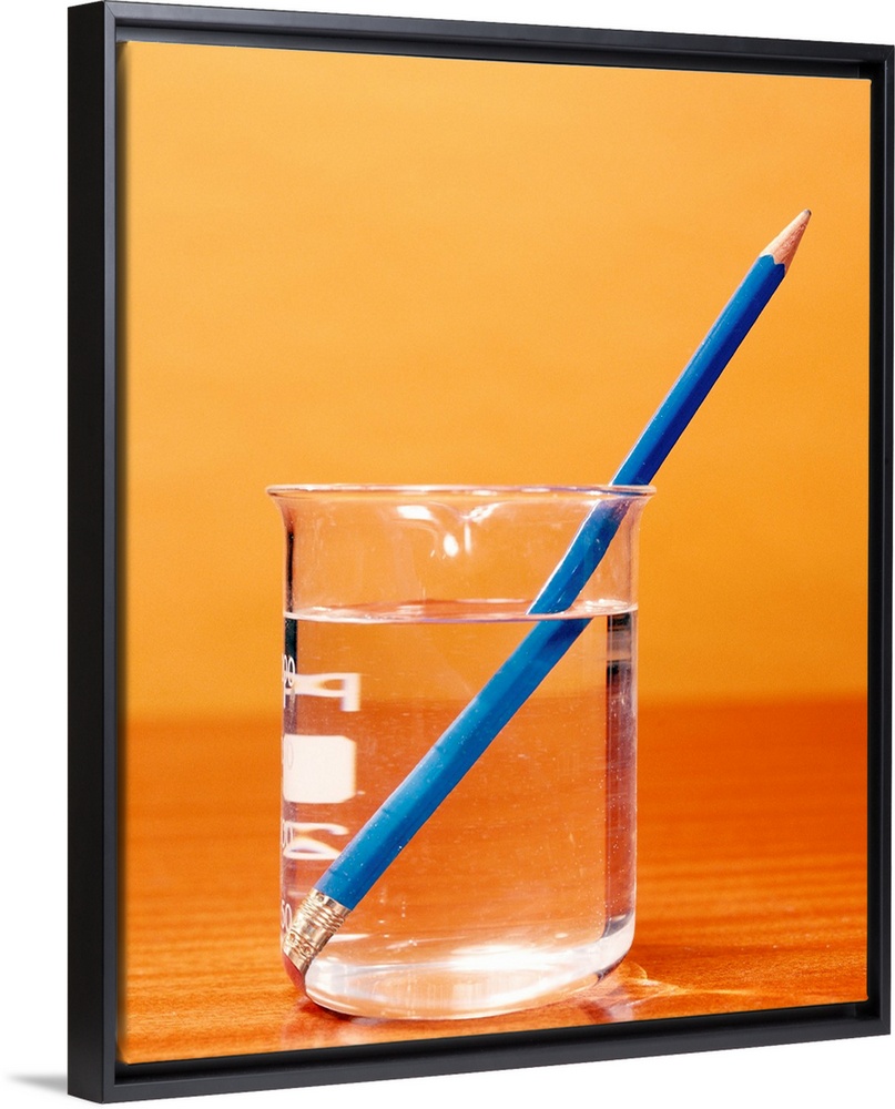 <p>Refraction of an image of a pencil in water. The pencil appears bent due to refraction (bending) of the light rays producing the image as they cross the air/water boundary.</p>