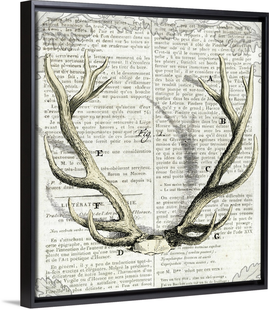 <p>Artwork of deer antlers against a piece of vintage looking newsprint.</p>