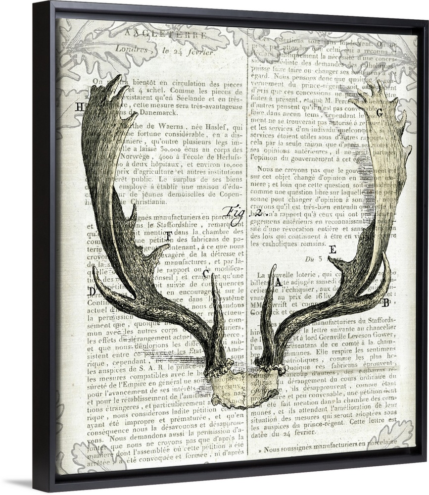 <p>Artwork of deer antlers against a piece of vintage looking newsprint.</p>