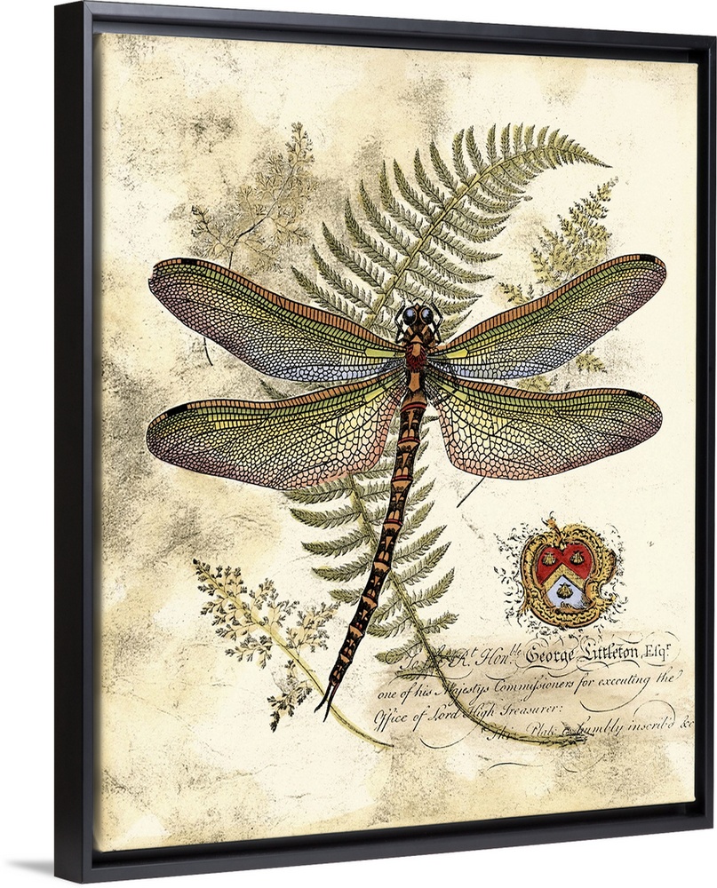<p>Contemporary artwork of a dragonfly and fern frond against a weathered beige background.</p>