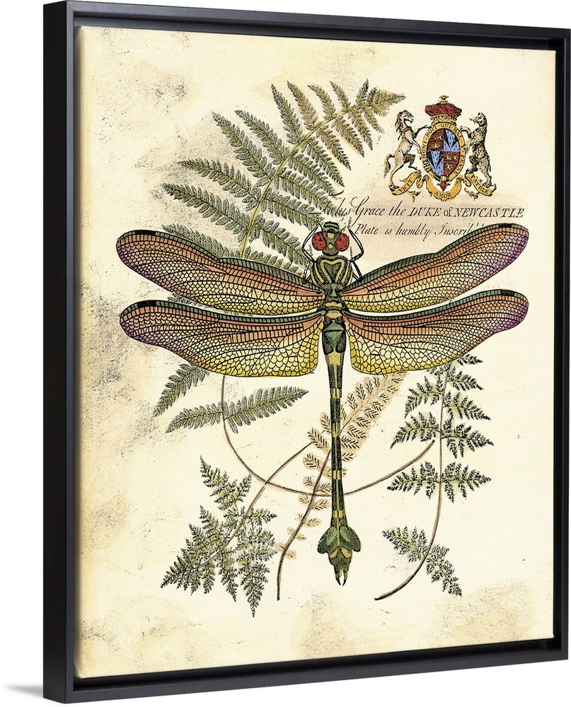 <p>Contemporary artwork of a dragonfly and fern frond against a weathered beige background.</p>