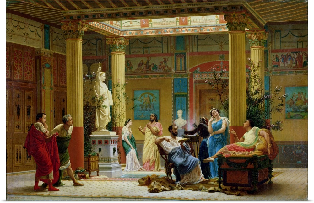 <p>XIR83619 A Performance of 'The Fluteplayer' in the 'Roman' house of Prince Napoleon III (1808-73) 18 Avenue Montaigne, 1861 (oil on canvas); by Boulanger, Gustave Clarence Rodolphe (1824-88); 83x130 cm; Chateau de Versailles, France; Lauros / Giraudon; French, out of copyright</p>