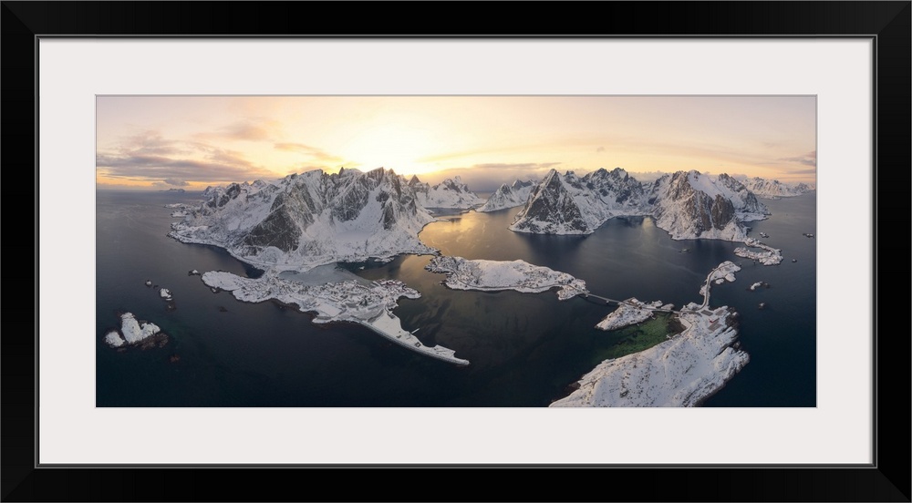 <p>Reine Bay, Sakrisoy and Hamnoy village with Olstind peak covered with snow, Lofoten Islands, Norway.</p>