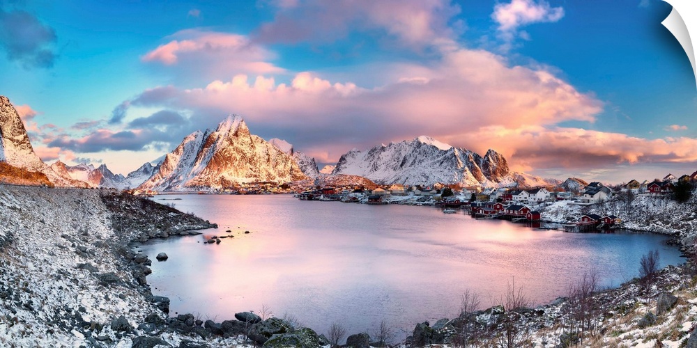 <p>Reine, Lofoten Islands, Norway; Panoramic photo of Reine.</p>