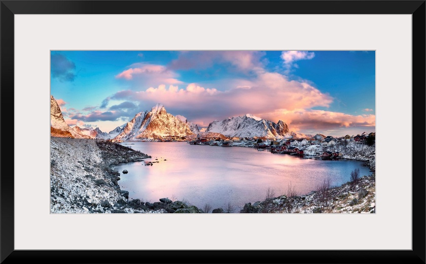 <p>Reine, Lofoten Islands, Norway; Panoramic photo of Reine.</p>