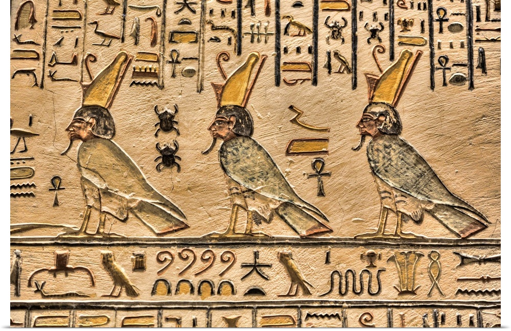<p>Relief of Pharaohs, Tomb of Ramses V and VI, KV9, Valley of the Kings, UNESCO World Heritage Site, Luxor, Thebes, Egypt, North Africa, Africa</p>
