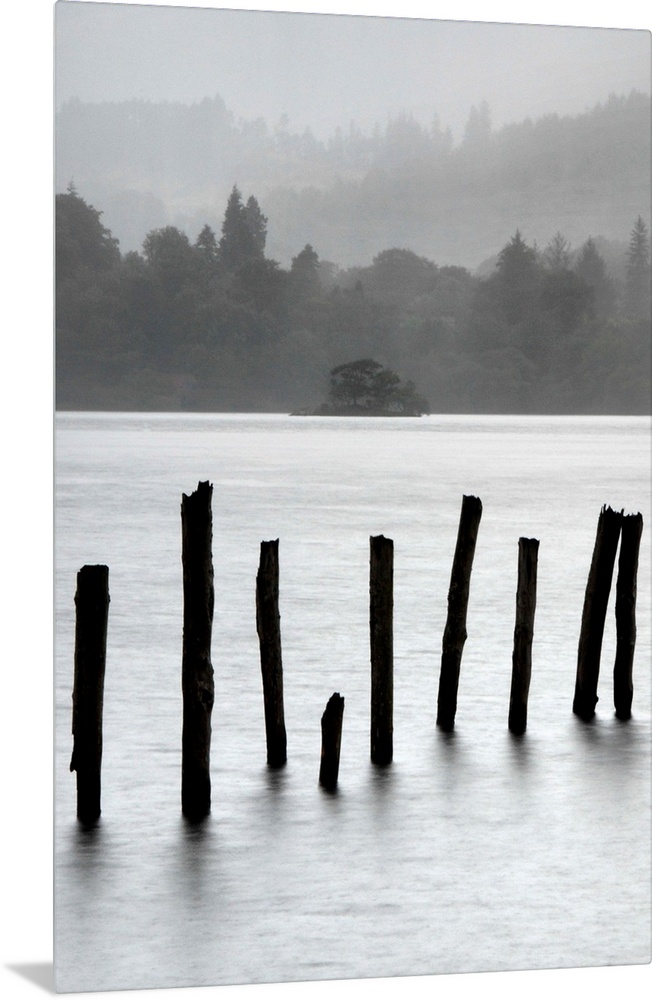 <p>Remains of jetty in the mist, Derwentwater, Cumbria, UK</p>