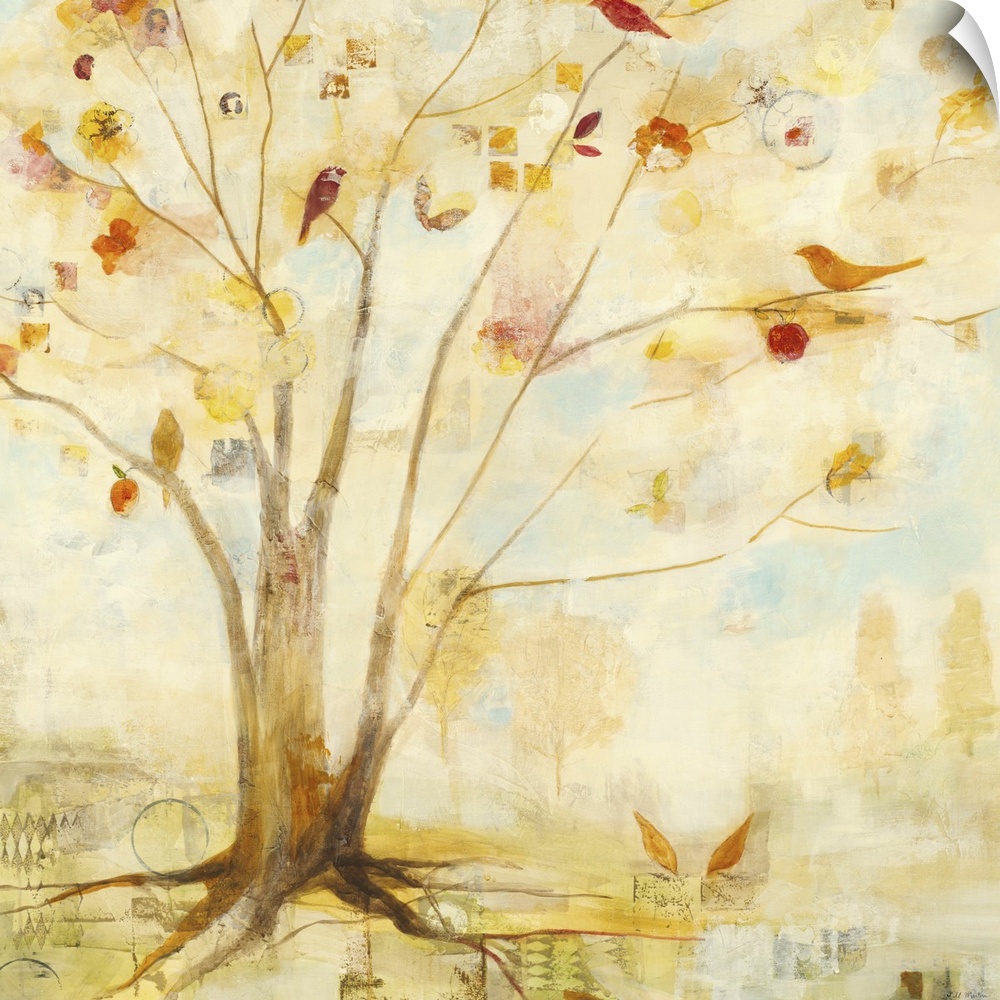 <p>Contemporary painting of a tree in pale golden colors.</p>