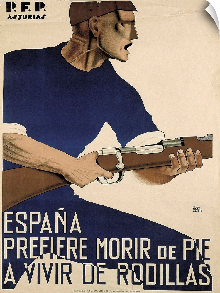<p>Spain. Civil War. Espana prefiere morir de pie a vivir de rodillas (Spain prefers to die standing, rather than live on my knees). Poster of the Republican side, work by Faustino Goico-Aguirre. -</p>