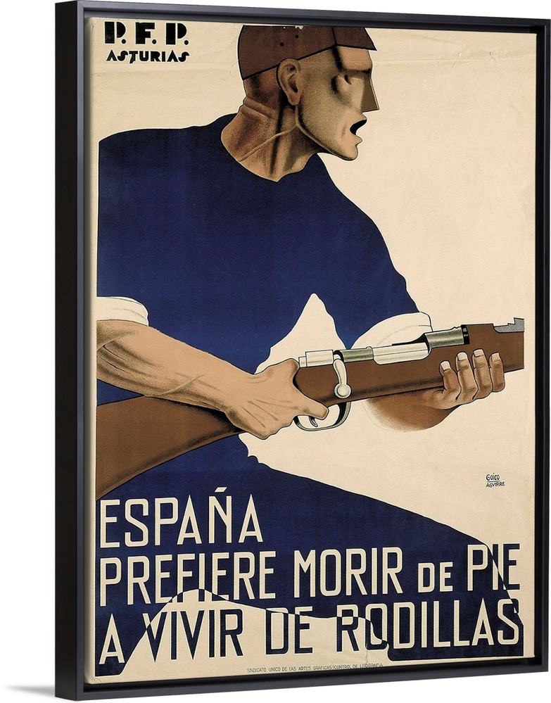 <p>Spain. Civil War. Espana prefiere morir de pie a vivir de rodillas (Spain prefers to die standing, rather than live on my knees). Poster of the Republican side, work by Faustino Goico-Aguirre. -</p>