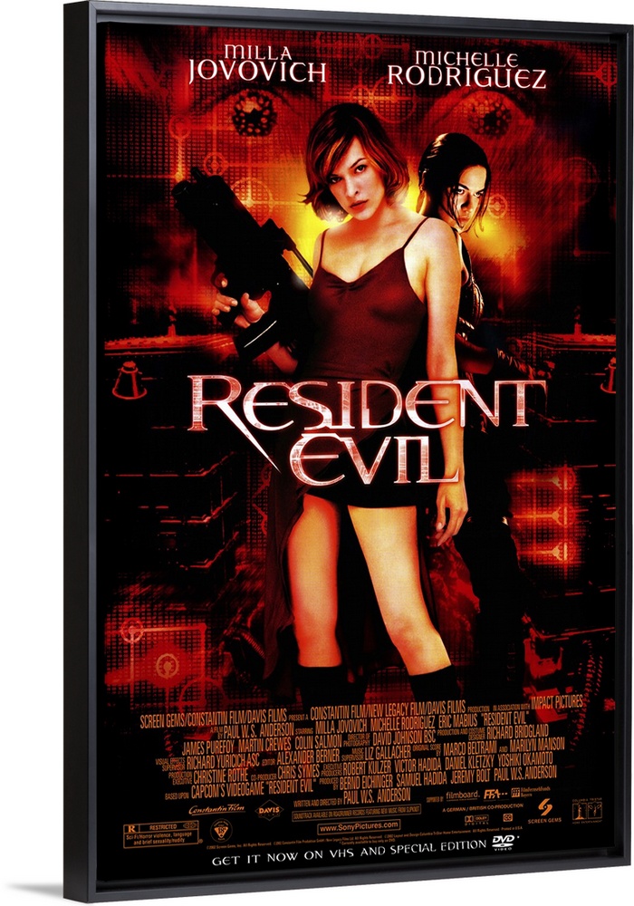 <p>Yet another noisy movie adapted from a videogame, which never gets as creepy as a zombie movie should. Umbrella Corp. (AKA the Hive) is the front for a secret military tech and genetics operations. Its security operations are controlled by a A.I. computer known as the Red Queen, which instigates a series of defensive measures to contain a virus (that can reanimate the dead) that has been released. A group of containment specialists (including heroine babe Jovanovich) are sent in and have to battle workers who have been contaminated and turned into flesh-munching creatures.</p>