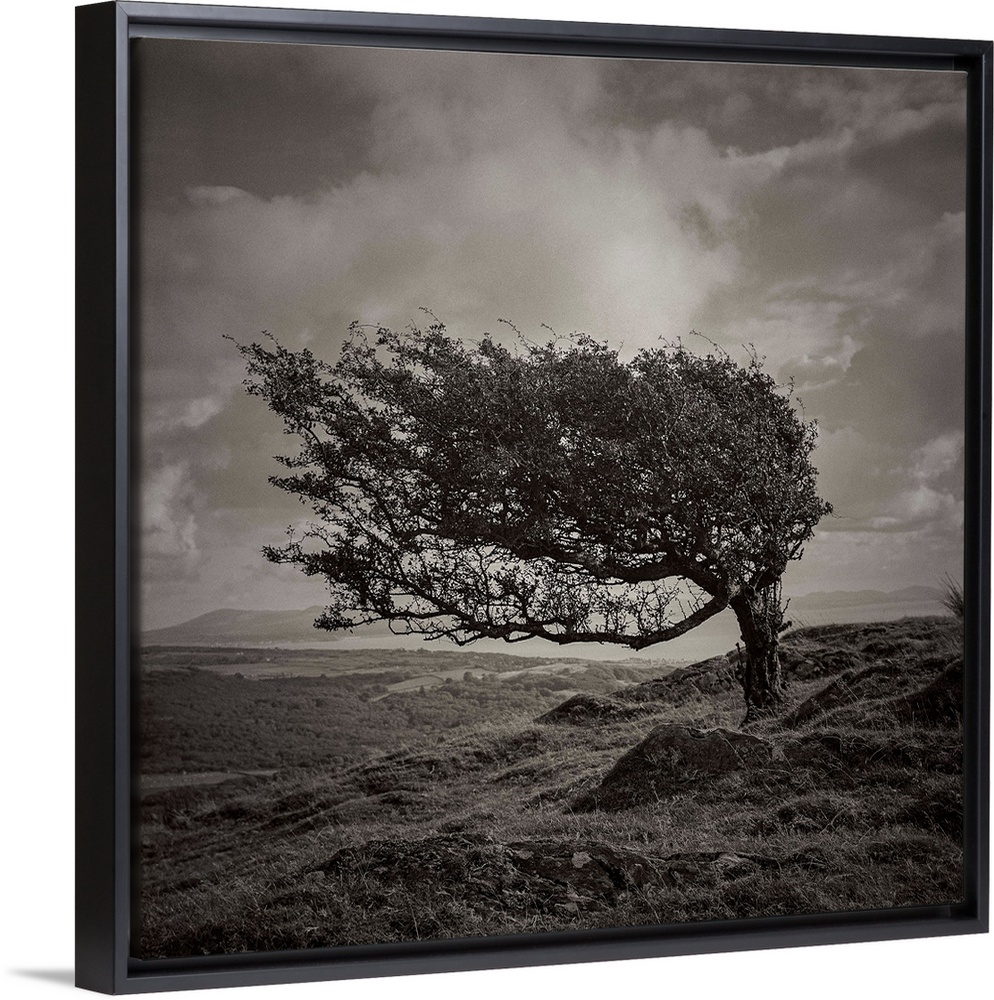 <p>A black and white photograph of a tree standing lone in an ethereal landscape.</p>