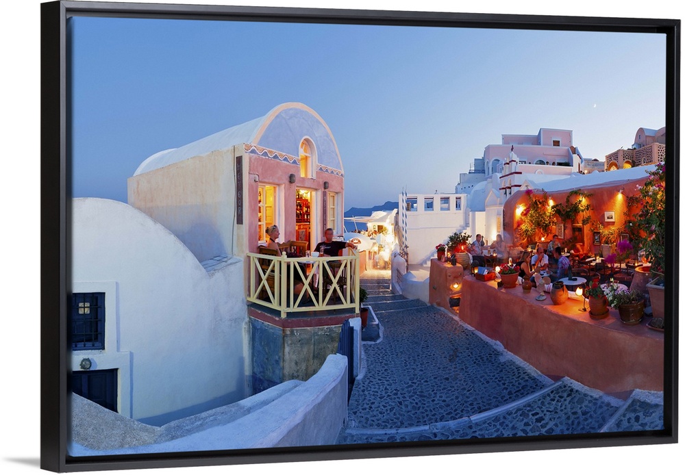 <p>Resturants in the village of Oia (La), Santorini (Thira), Cyclades Islands, Aegean Sea, Greece, Europe</p>