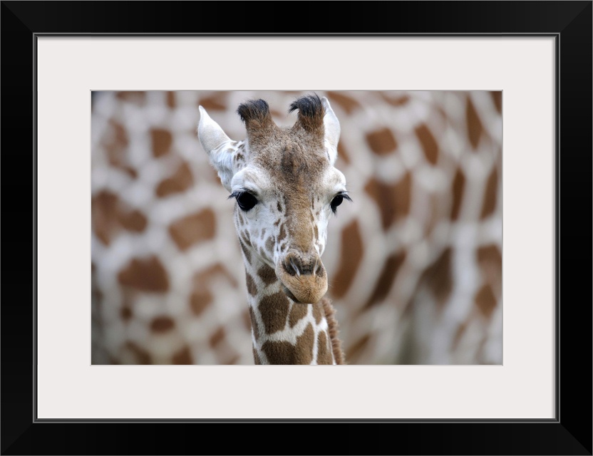 <p>Netzgiraffe, Giraffa camelopardalis reticulata, captive, Jungtier, calf</p>