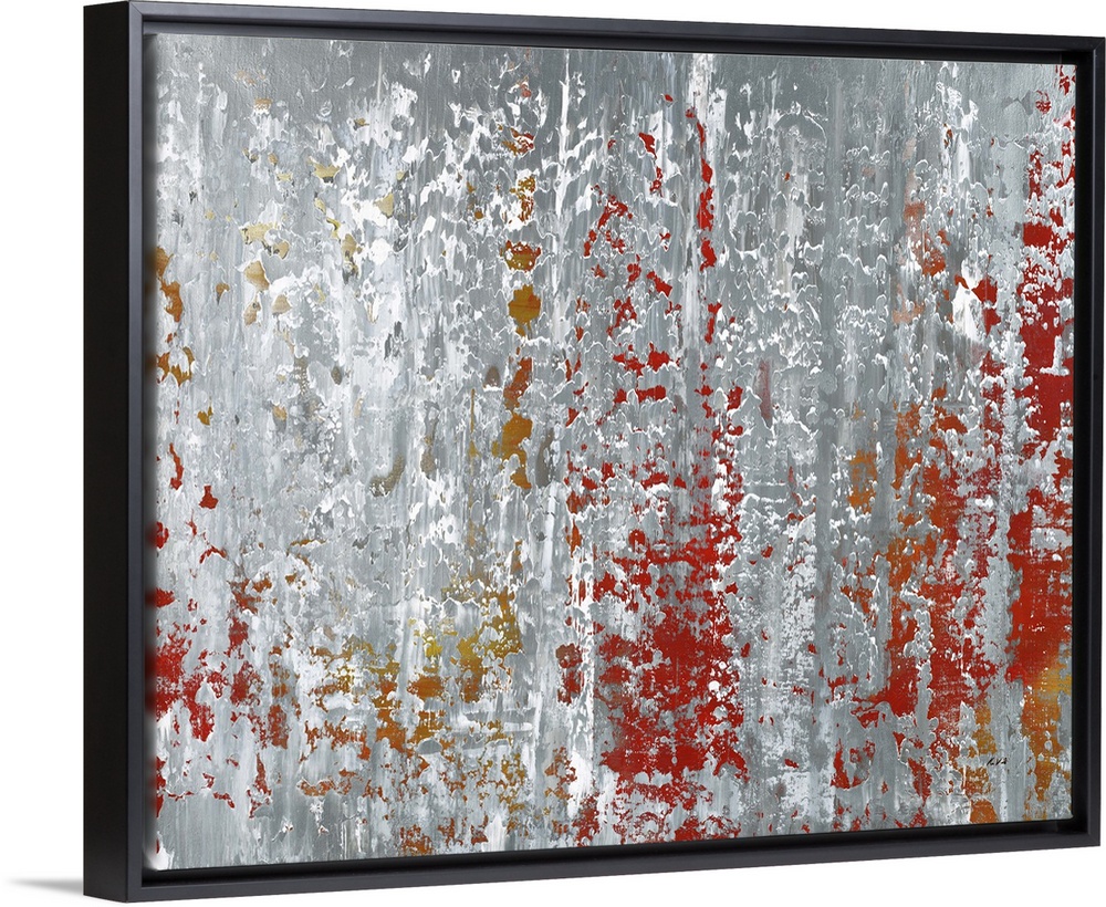 <p>Contemporary abstract painting using muted gray and red tones.</p>