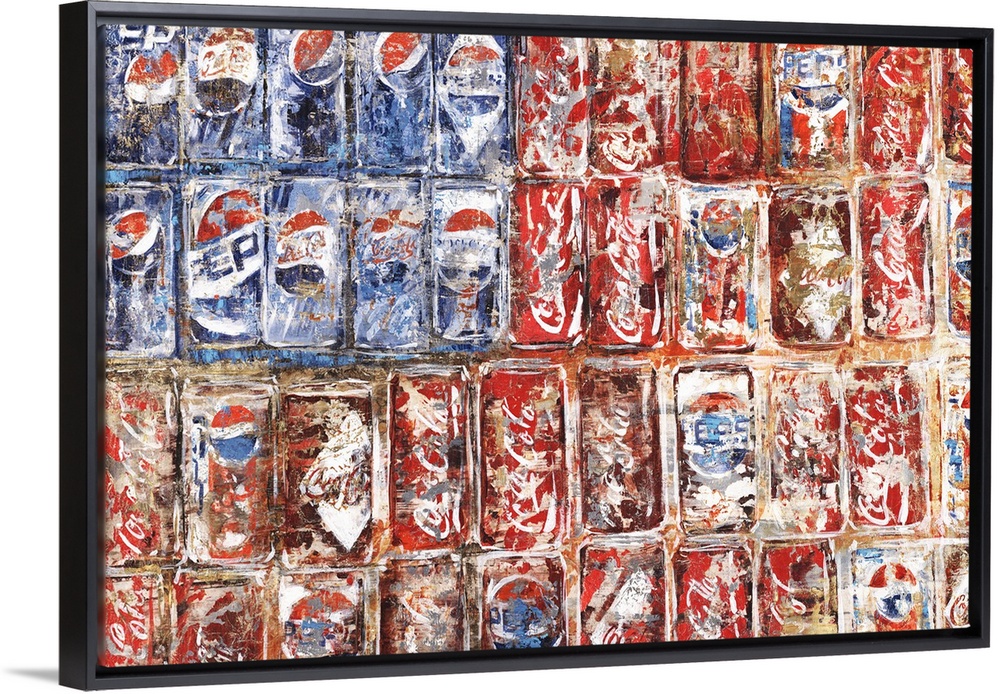 <p>Contemporary abstract painting resembling the American flag, created out of Pepsi and Coca Cola cans</p>