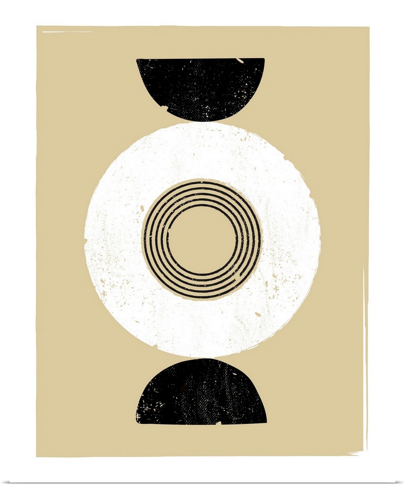<p>A circular, geometric image in a retro style in neutral colors.</p>