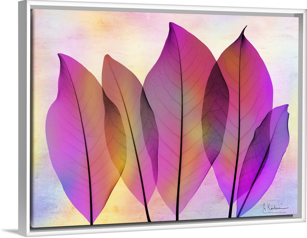 <p>X-Ray photography of Magnolia leaves in vibrant pink and purple colors.</p>