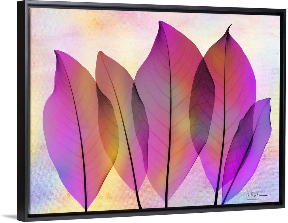 <p>X-Ray photography of Magnolia leaves in vibrant pink and purple colors.</p>