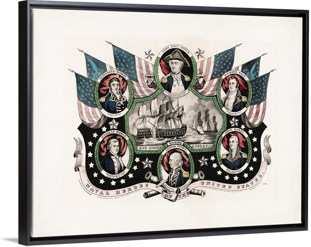 <p>Revolutionary War American naval officers with the battle between Bon Homme Richard and the Serapis.</p>