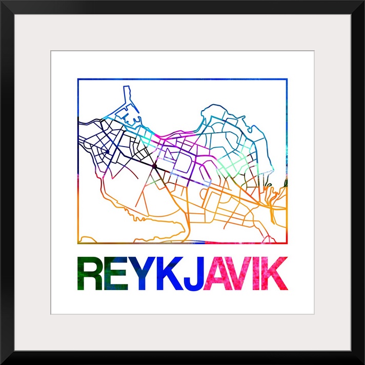 <p>Colorful map of the streets of Reykjavik, Iceland.</p>