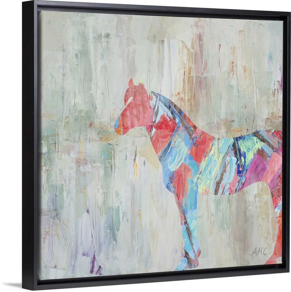 <p>Silhouette of a horse in blue and pink streaks.</p>