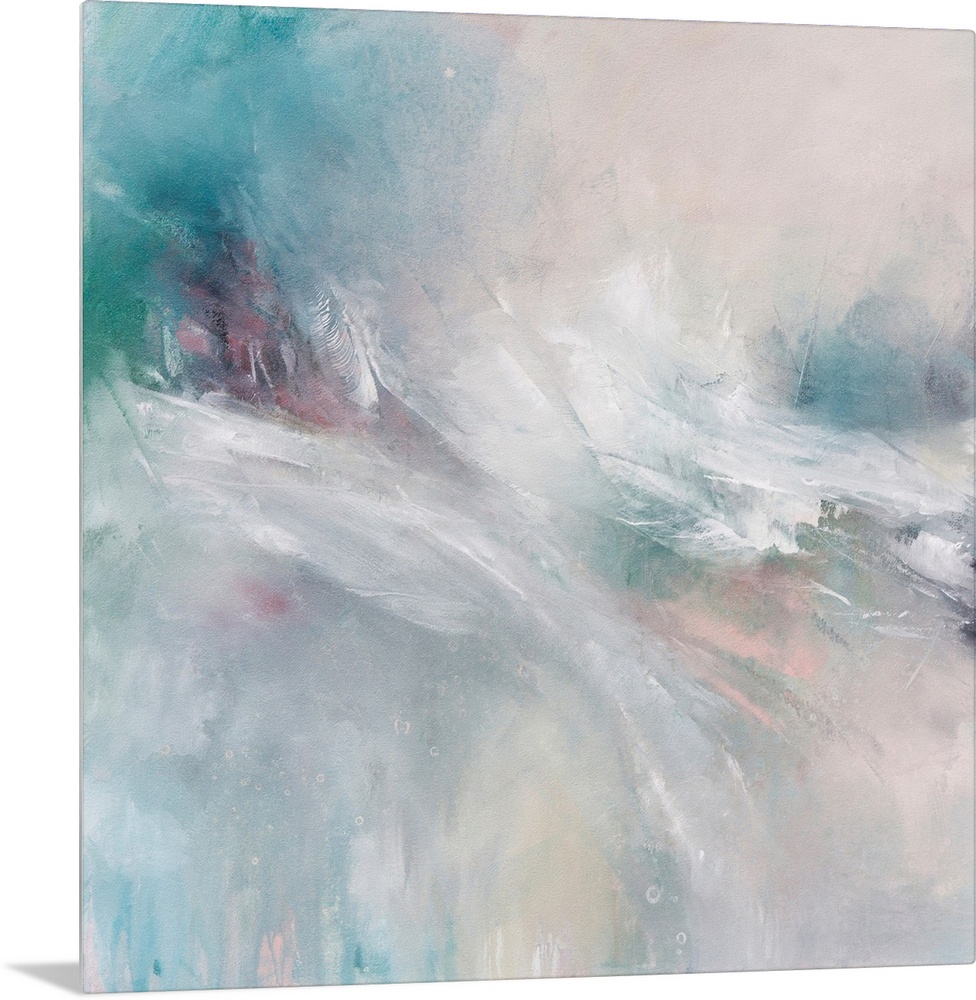 <p>Karen Hale's abstract paintings evoke a peaceful calm through her use of muted tones and unexpected hints of color.</p>