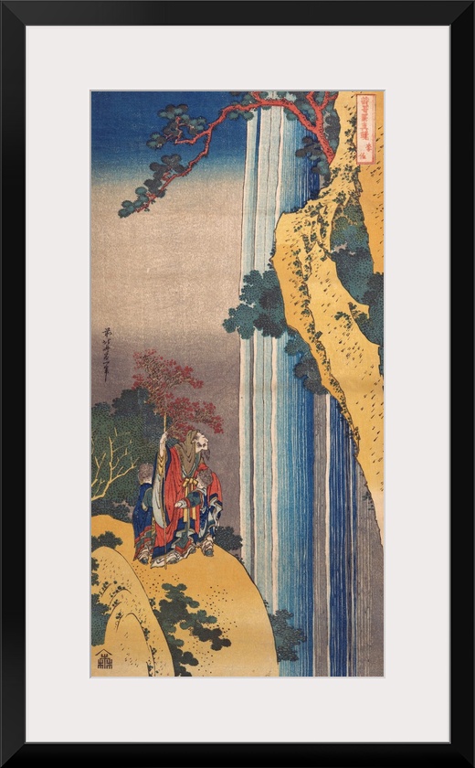 <p>The lofty character of Chinese poets as well as the time-honored theme of the poet Li Bo viewing a waterfall are transformed by Hokusai into a joyous, thrilling spectacle of natural wonder. The contrast between the poet's profound absorption and the two boy attendants fussing over him gives the scene its animating piquancy.</p>