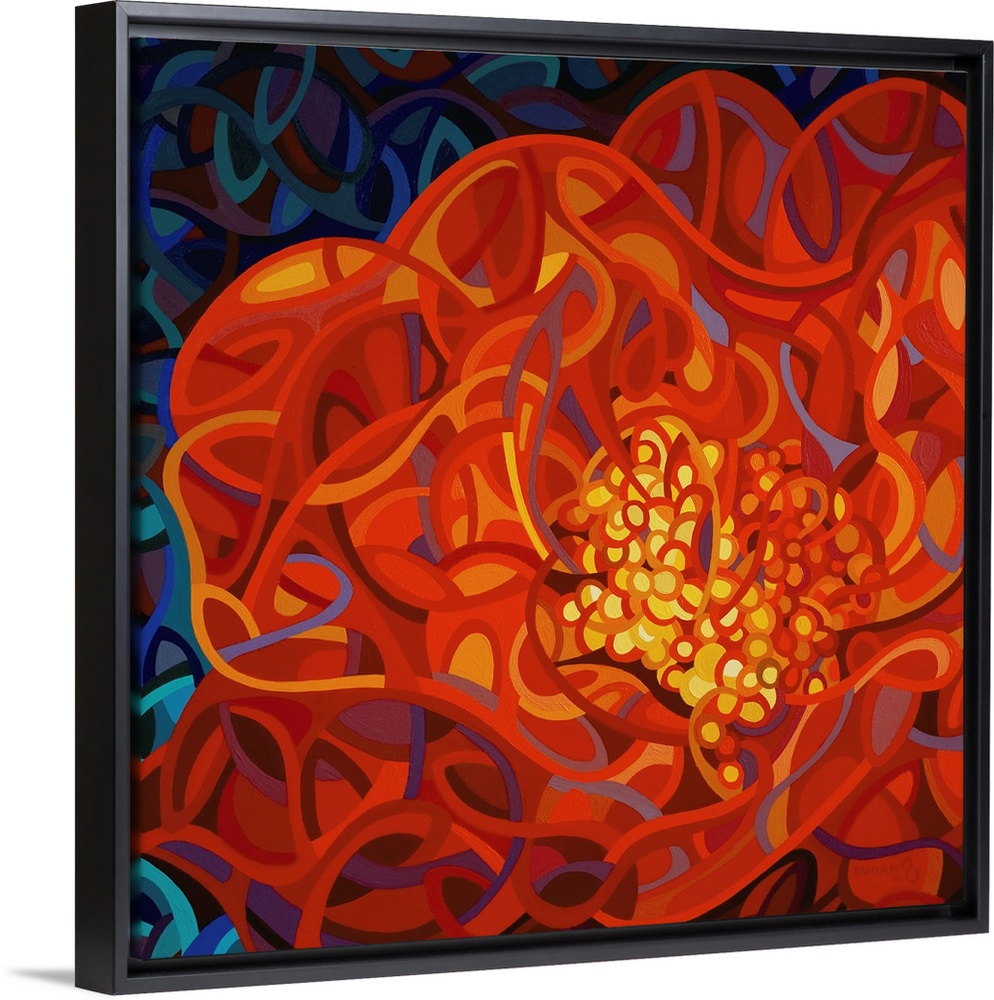 <p>Mandy Budan’s art style is more than unique. Using acrylic colors to weave lines and shapes together like a tapestry, she creates breathtaking images from the simplest forms. Though the multicolored dots of “Standing Room Only” may seem like a scattering of disparate, broken circles up close, a step back reveals a stunning forest scene reminiscent of stained glass. In “Solitaire,” a close examination reveals an intricate collection of interlocking pieces, almost like peeking at the delicate harmony of gears in a pocket watch. Yet again, a step away from the canvas transforms her design into an unrestricted dance of fluid lines and curves in a blossom. Whether it’s the soft floral pinks of “Cascade,” the gold turning crimson in “Stormlight,” or the sweeping blues of “Thaw,” wall art from Mandy Budan adds more than color to a room; it invites visitors to discover something new each time they encounter it.</p>