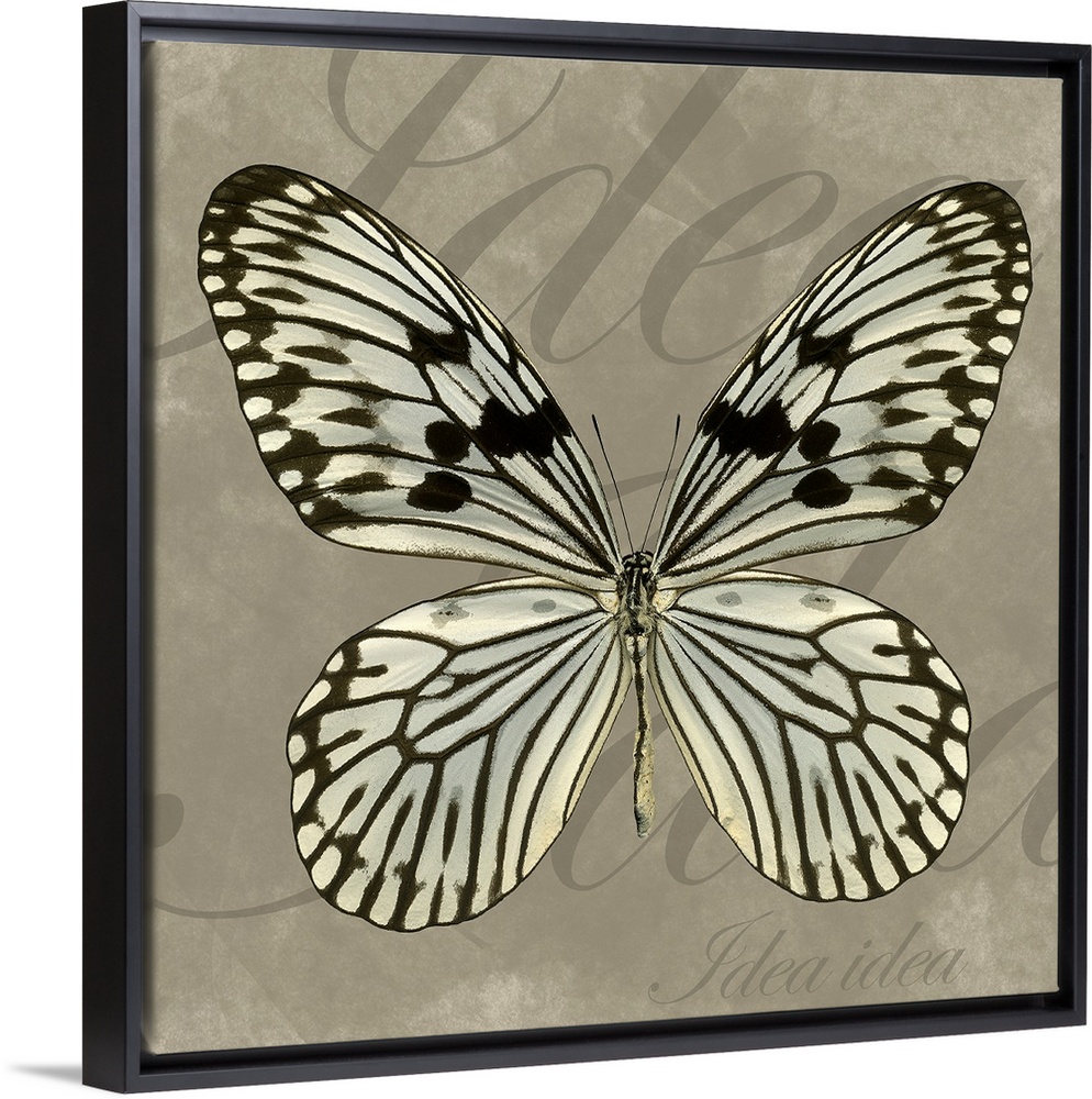 <p>Artwork of a butterfly with the text "Idea Idea" in large and small fonts in the background.</p>