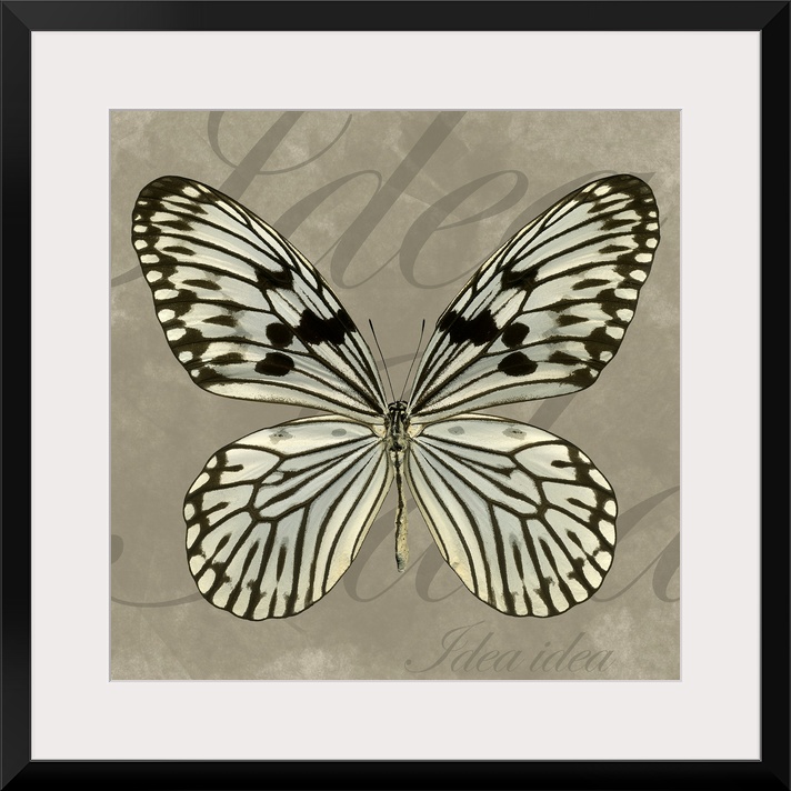 <p>Artwork of a butterfly with the text "Idea Idea" in large and small fonts in the background.</p>