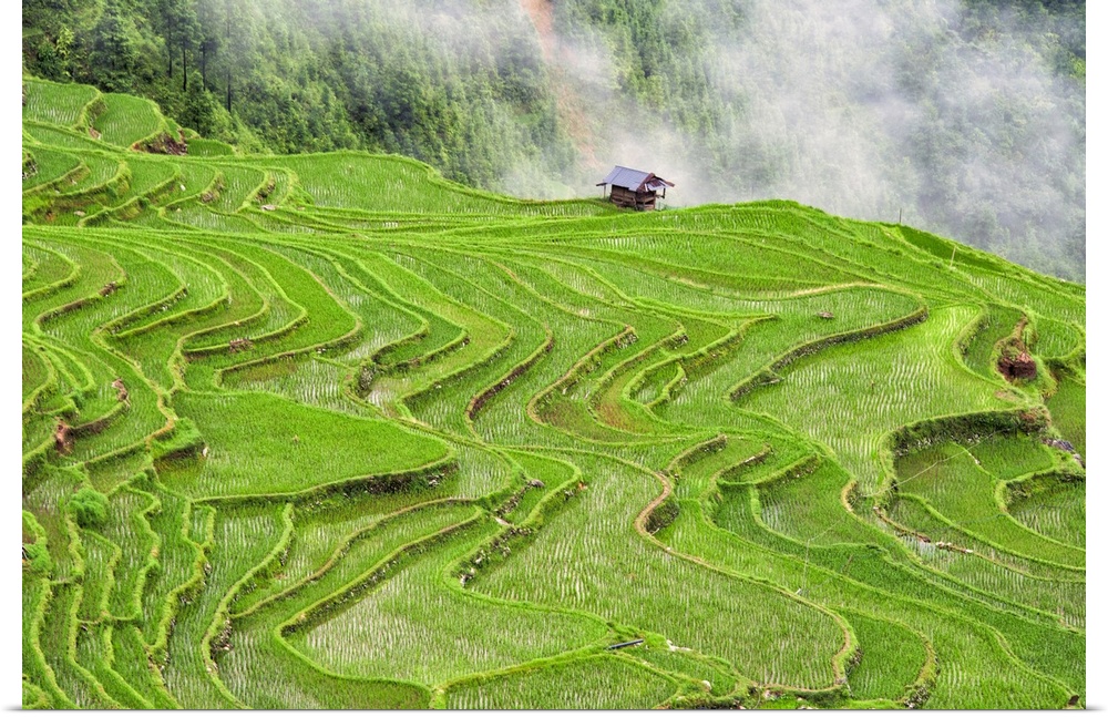 <p>Rice terraces in the mountain in morning mist, Jiabang, Guizhou Province, China</p>