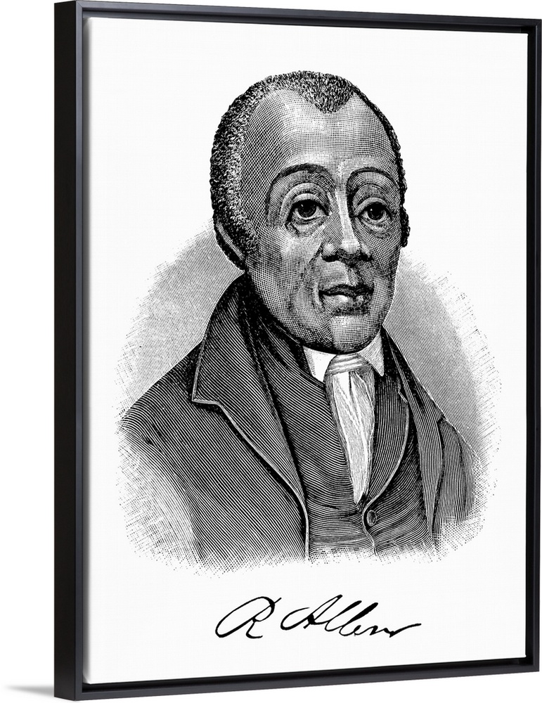 <p>RICHARD ALLEN (1760-1831). American minister and founder of the African Methodist Episcopal Church. Engraving, c1887.</p>