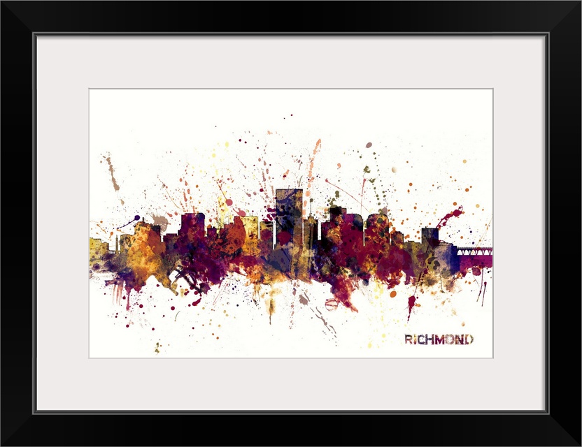 <p>Watercolor and paint splashes art print of the skyline of Richmond, Virginia, United States</p>