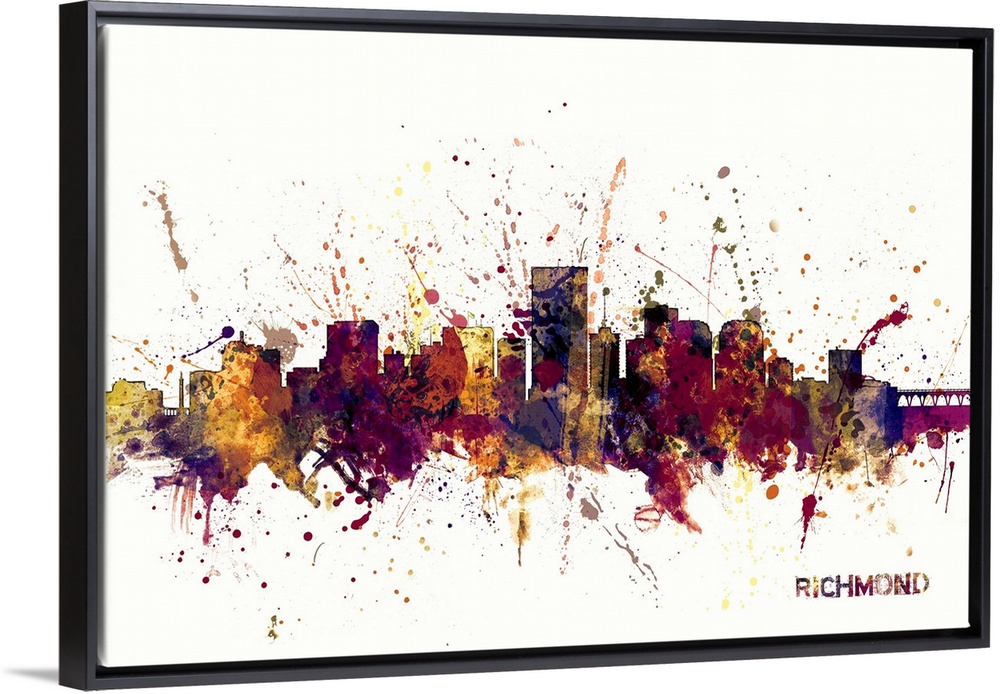 <p>Watercolor and paint splashes art print of the skyline of Richmond, Virginia, United States</p>