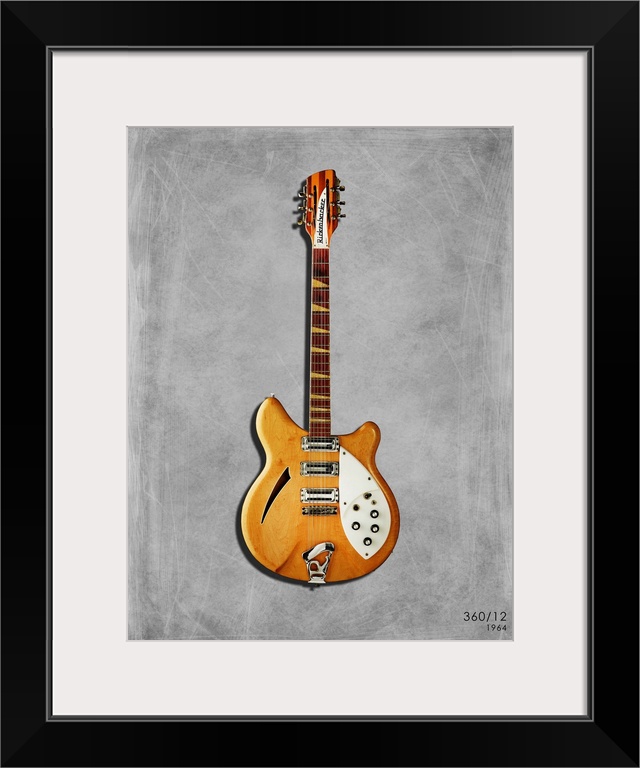 <p>Photograph of a Rickenbacker 360 12 printed on a textured background in shades of gray.</p>