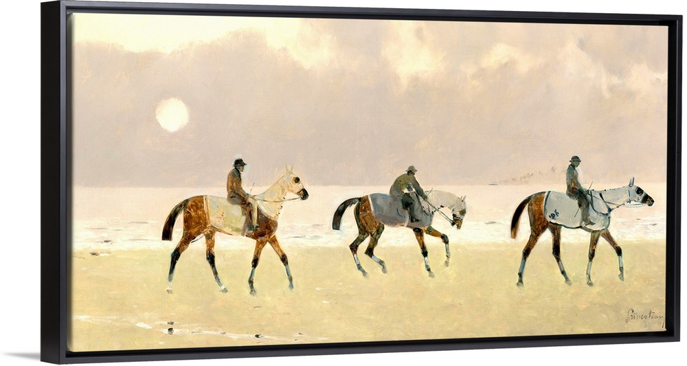 <p>Riders on the Beach at Dieppe, by Rene Pierre Charles Princeteau, 1892, French painting, oil on canvas. Princeteau was noted for his realistic horse painting, hunting scenes, racing, and equestrian portraits. The simplicity of this late work appears to sh</p>